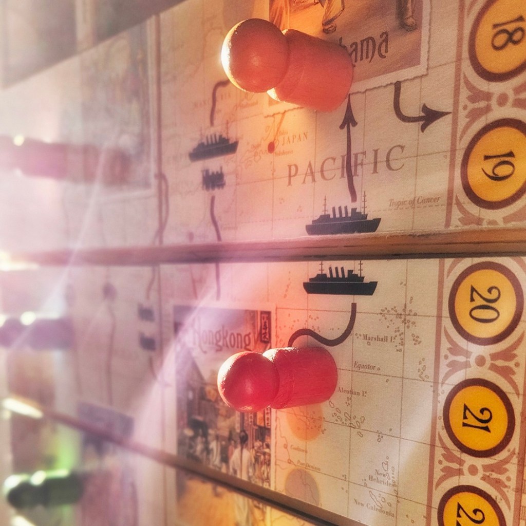 Für die Außenseite habe ich, bis auf die Abschlussplatte oben, nur ein einziges Spiel verwendet – „In 80 Tagen um die Welt“ vom Kosmos Verlag, das 2005 zum „Spiel des Jahres“ gekürt wurde – um eine klare und ruhige Ästhetik zu erreichen.